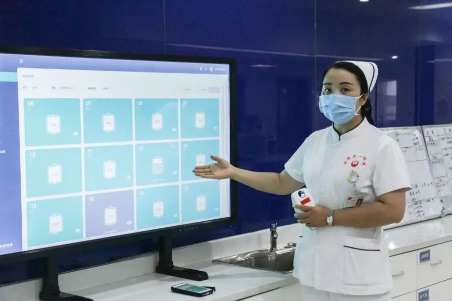 以往,病房輸液是讓護(hù)士和患者最操心的一環(huán),護(hù)士得來回跑動(dòng)反復(fù)查看確認(rèn),患者也得盯著輸液袋生怕錯(cuò)過拔針。而在智慧病房,一個(gè)小小的輸液傳感器,加上護(hù)理白板或者移動(dòng)終端,護(hù)士就可以同時(shí)查看所有患者的輸液情況,輸液異常、需要拔針時(shí)都會有智能提醒保障了患者的輸液安全,也提高了護(hù)士的工作效率。